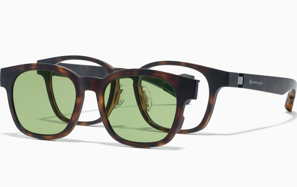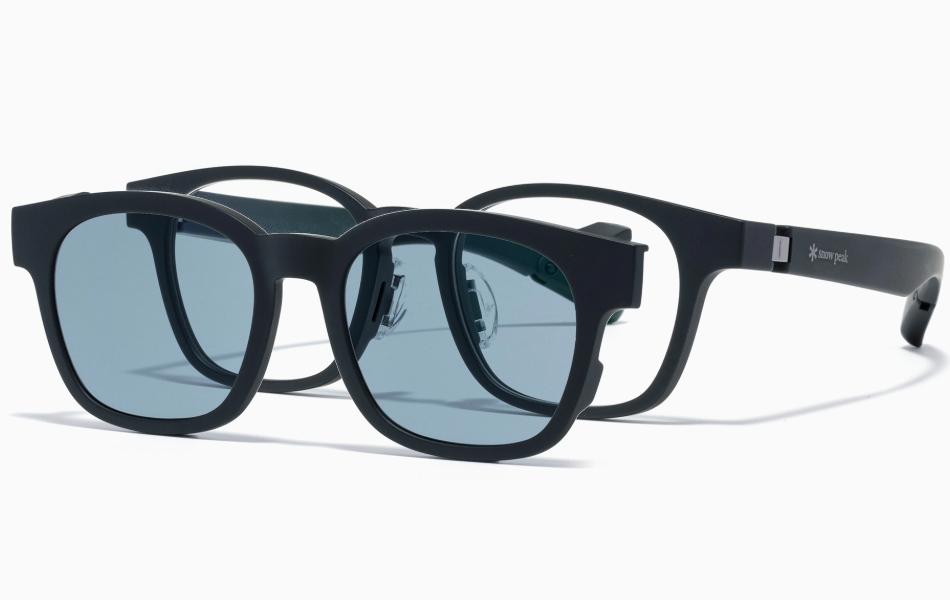 日本jins睛姿联合日本高端露营和远足设备制造商雪峰SnowPeak出的联名款 Switch眼镜,满足户外活动爱好者易用性的要求,通过拆卸并向上翻转板,即可从眼镜切换为太阳镜,附赠印有Snow Peak标志的眼镜袋和眼镜布。打球、跑步、登山、钓鱼、从事水上活动等,都适合配戴。